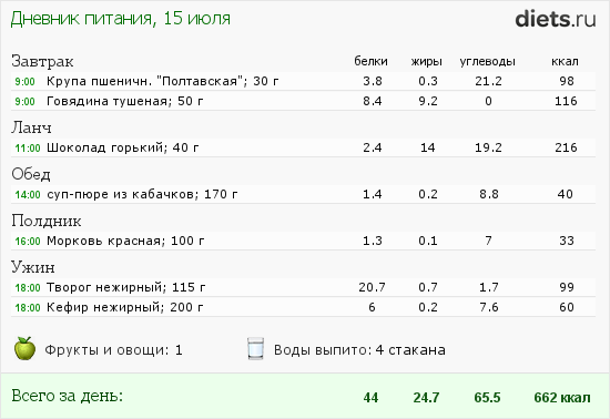 Отчет за 15 июля: Вес 112.6 (ох, шоколад вечером)