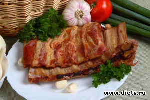 Добавляем ребрышки, морковь соломкой нарезанную, лук, перец болгарский и шампиньоны пластинками нарезанные, и минут 5 обжариваем.