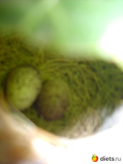 Но самая главная прелесть была в нашем дворике и это... Птичье гнёздышко с двумя яичками! Свито оно было очень низко и мы постоянно имели возможность наблюдать за жизнью пернатых. Вот только фотографий папы и мамы не получилось, летают быстро!
