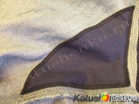 2. Края заплатки обметываем по всем срезам.