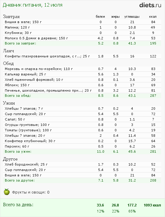 Хорошо, что калорийных ништяков дома особо нет, поэтому ем овощи, фрукты, желе.. максимум - хлебец с конфитюром, одну печеньку...