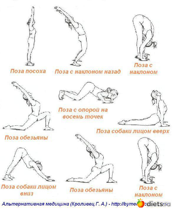 Йоговские упражнения направлены, прежде всего, на поддержание здорового состояния позвоночника. Позвоночный столб заключает в себе центр нервной системы — телеграфную систему тела. Являясь непосредственным продолжением головного мозга, он обеспечивает здоровье всего тела. Поддерживая гибкость и силу позвоночника соответствующими упражнениями, мы улучшаем циркуляцию крови, в результате нервы снабжаются азотом и кислородом, и тело поддерживает свое молодое состояние.