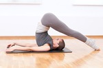Исходное положение: лежа на спине, ноги поднять над головой вертикально вверх, руки вдоль туловища. Делаем вдох, на выдохе напрягаем живот, стараемся поднять бедра как можно выше вверх и тянемся носками ног за голову. Чуть-чуть лежим, даем мышцам привыкнуть.