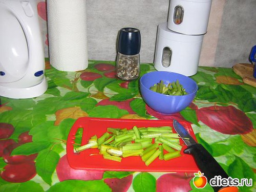 Перебрал, помыл, порезал и сразу в пластиковую миску.