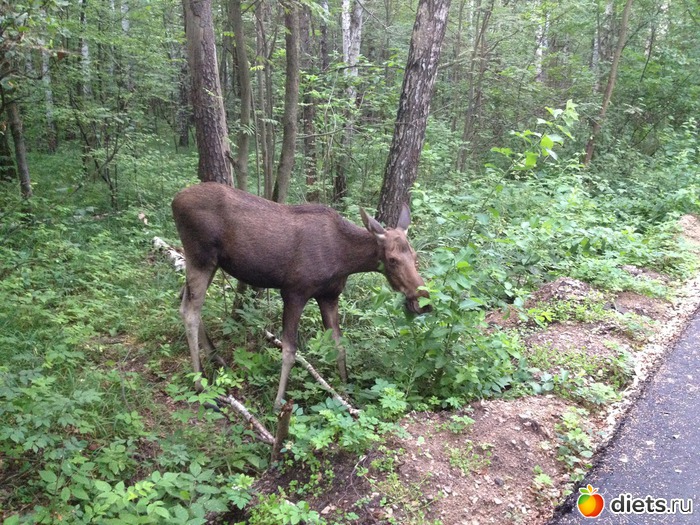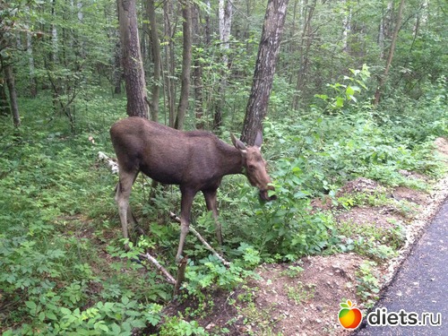 Мы очень душевно проехали около 20 километров, а часть пути пролегала через парк Лосиный Остров... и представьте мое удивление, когда мы встретили там лося! О_о или лосенка... или лосиху... в общем, молодого лося! который пасся у дороги и безжалостно обдирал с кустов листья! и ему было практически пофиг на нас - он только отскакивал немного, если кто-то делал слишком резкие движения, но почти сразу же возвращался назад и продолжал обгладывать кусты и спокойно позволяя нам себя фотографировать! в общем, сказать, что я в восторге была - ничего не сказать! =)))