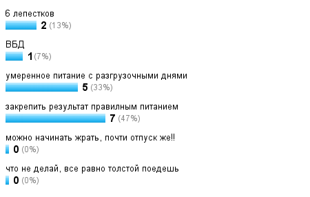 мнением большинства буду питаться правильно, закрепляя результат + разгрузы