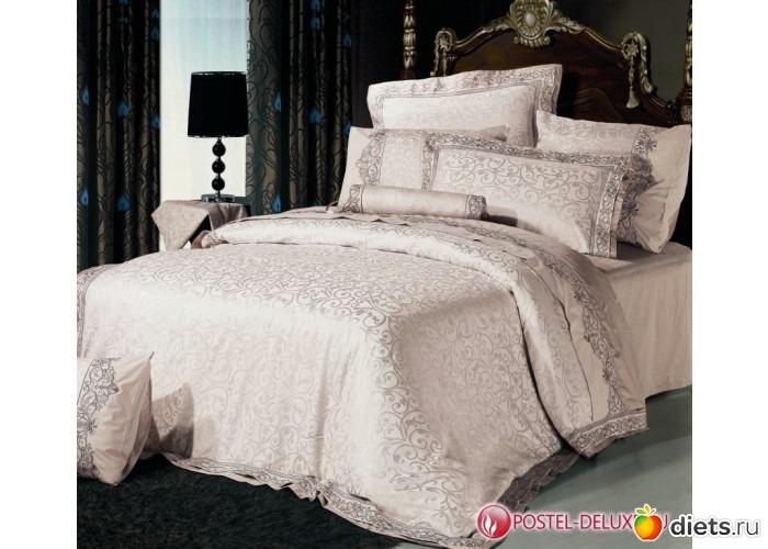 А тут... знаете, как в отелях люксовых... такой гладенький хлопок... да даже лучше, ведь там обычно тоже хоть и качественный хлопок, но ткань однотонная и без вышивки... а тут вышивка и все такое переливается... ммм... Да, на картинке выглядит покрасивее наверное, там кажется что вся верхняя часть переливается, на деле же толко вышивка... и цвет серый, а не с примесью кофе... но мне все равно дико нравится
