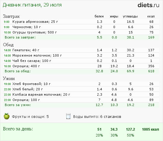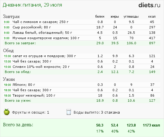 И под вечер всё же наелась... Пошла к подруге ночевать и вот... Отрабатывала на велотренажёре, но всё равно мой бутерброд с колбасой вылез сегодня с утра. Вывод: нефиг себя в полуголодном состоянии было держать, тогда бы не сорвалась! Сегодня иду в спортзал, так что компенсирую