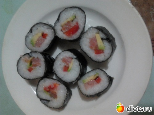 Сделала суши с семгой, авокадо и перчиком. Диетично и объедение.