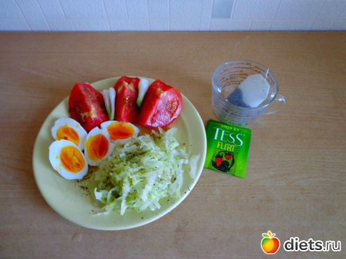 о- 2 яйца, капустка, помидор