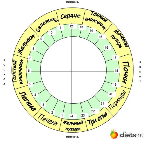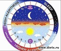 Согласно суточным биоритмам, общим для всех людей, аппетит активно повышается в середине дня и поздно вечером; удерживать воду организм предпочитает ночью; а желудок наиболее активно работает в промежутке между 7 и 9 часами утра.