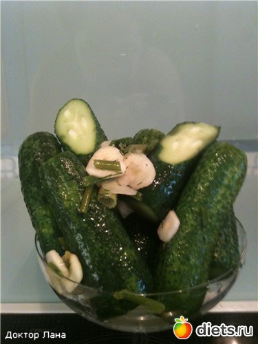 Все как обычно. Только результат интересный. Огурцы остаются ярко зеленого цвета и просто неприлично хрустят