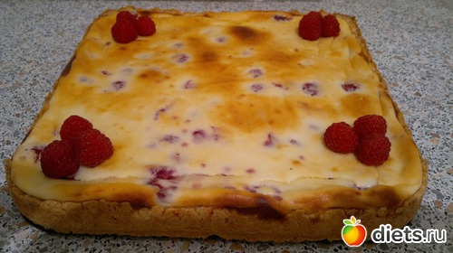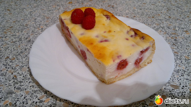 Сегодня я опять была примерной женой и хозяйкой... а в принципе как всегда!))) Сегодня с дачи свекровь привезла огромное ведро малины, и вот, переделав все свои обычные домашние дела, я таки занялась ягодой! Фантазии не было предела! Мужу тарелочку самых крупных ягод выбрала, чтобы свеженькой покушать, варенья баночку сварила (на случай простуды зимой), с сахаром перетерла, заморозила часть (в овсянку буду добавлять), ну и напоследок испекла вкуснейший пирог (что-то вроде чизкейка!).
