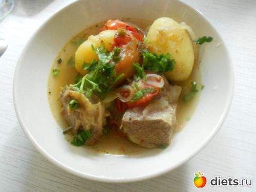 Закупила говяжье рагу на хрящиках, картошку, помидоры, перцы и затеяла хашламу.