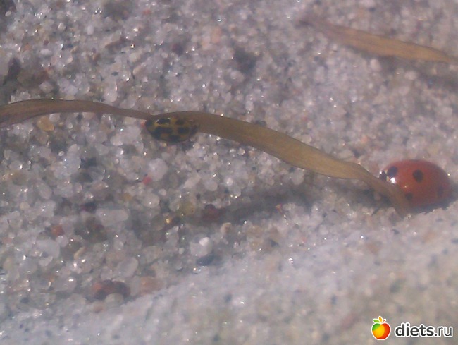 Это на море - морской песок, сухая травинка и божьи коровки. Не очень хорошо получилось, но нравится мне ужасно! Песок такой красивый получился.