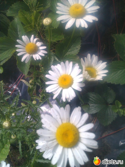 А ромашку не жалей, их так много, что уже скоро не видно клубники будет.
