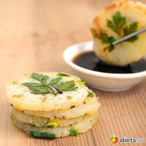 Нагрейте столовую ложку масла на средней огне на сковороде. Выложите столовую ложку смеси, обратной тороной ложки прижмите и сформируйте блин. Аккуратно вдавите лист петрушки сверху. Обжарьте с обеих сторон до хрустящей корочки. Подавайте теплыми с любым соусом.