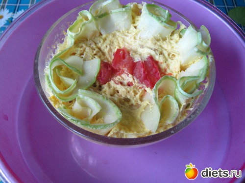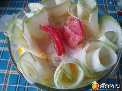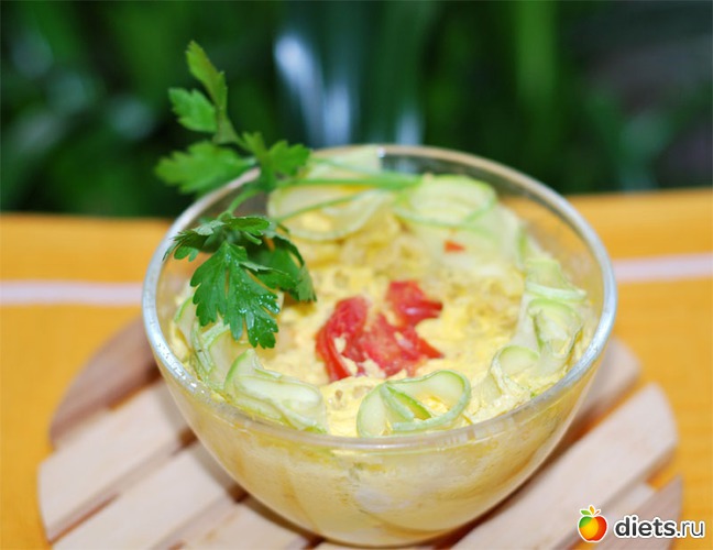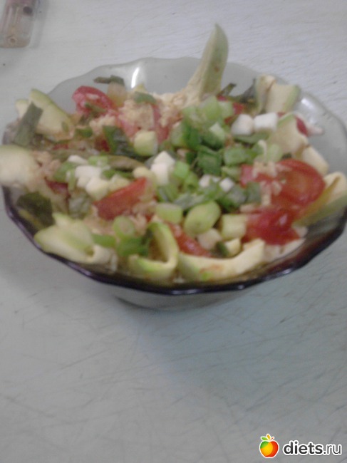 1. Кабачок или цуккини (молодой) - 80 гр Кстати, калорийность цуккини ниже, чем кабачка. 16 ккал на 100 гр.