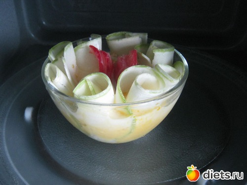 Ставим форму в микроволновку и запекаем при максимальной мощности (1000 Ватт) 4 минуты.