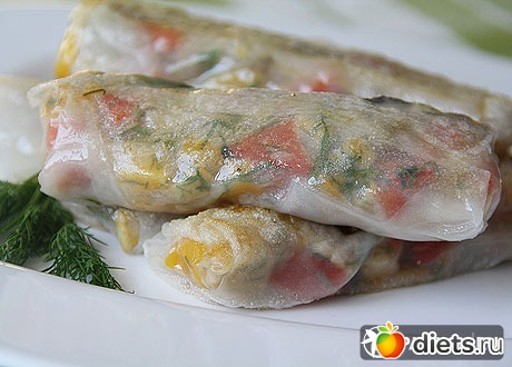 Готовая рисовая бумага удобна в применение. Она всегда под рукой, и не надо затрачивать время на её приготовление. Достаточно приготовить начинку и завернуть её в рисовую бумагу.