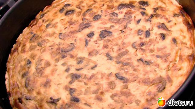 Когда тесто охладится, раскатайте его и выложите на дно формы для выпекания, сделав небольшие бортики. Выложите начинку на тесто, разровняйте и выпекайте в духовке, разогретой до 180 градусов, в течение 40 минут.
