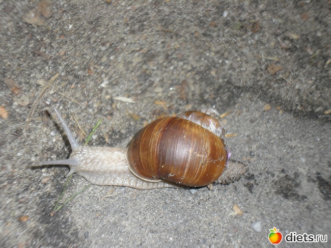Не помню, показывала я эту улитку? Она сантиметров десять длиной. Я её чуть не удочерила, хотела домой взять - огромная!
