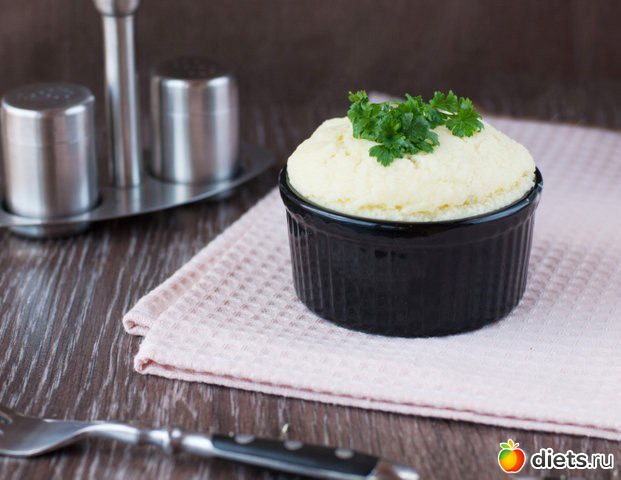 2) Затем капуста взбивается блендером с яйцами и омлетная смесь заливается в формы. На этом этапе можно добавить зеленый горошек, болгарский перец, зеленый лук, обжаренные на сковороде без масла грибы, нежирный сыр кубиками, соль, если очень надо – в общем, что угодно по вашему вкусу и возможностям. Без добавок омлет имеет довольно нейтральный нежный вкус.