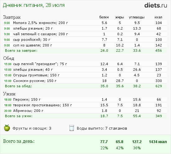 На ужин можно белки с овощами, может быть немного медленных углеводов (овощи с добавлением круп)