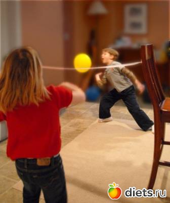Натягивается веревка на уровне среднего роста участников. Задача каждой команды - задуть воздушный шарик на территорию противника. Руками трогать нельзя.