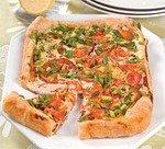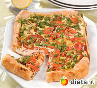 Сверху разложить в произвольном порядке нарезанные помидоры, приправить солью и перцем. Поставить в разогретую до 200 °С духовку на 20 мин.
