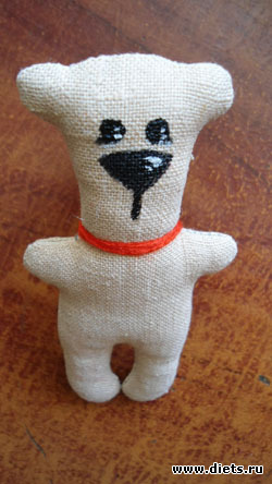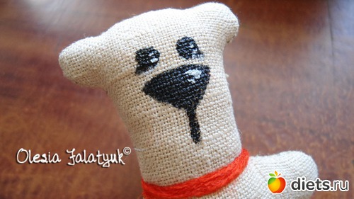 Мордашку разрисовать или вышить. Ошейник нужен. Я нитку шерстяную намотала, можно и ленту завязать.