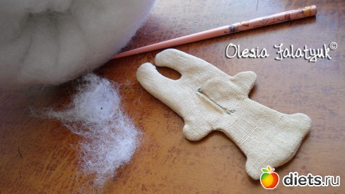 Теперь нужно набить куклу. Бить не будем) будем фаршировать синтепоном.