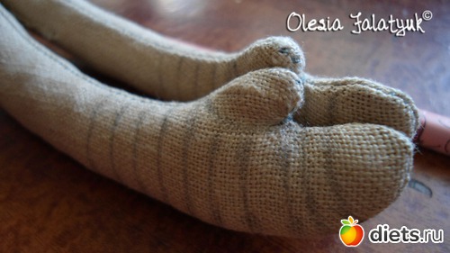 *У своей куклы я заострила на выкройке ножки.