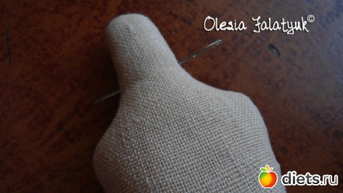 Плотнее всего набивается голова. Суйте туда столько сколько будет влазить. А рукой формируйте красивый шарик. А в отверстие для шеи просунте палец, потом туда легко войдёт шея куклы.