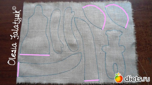*Розовым цветом показаны места, которые нужно будет вырезать, но не сшивать.