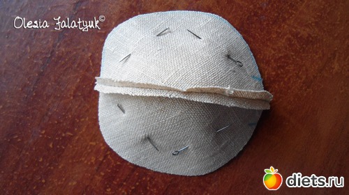 Если вы шьёте руками, то детали лучше сметать, затем вырезать и уж потом сшить мелким стежком.
