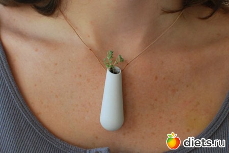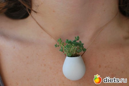 Небольшой горшочек с растением, который можно носить в качестве украшения. (дизайн: Колин Джордан)