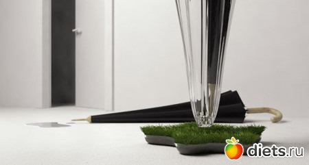 Элегантная подставка для зонта, использующая дождевую воду, стекающую с него в качестве питания. (дизайн: Саймон Эневер)
