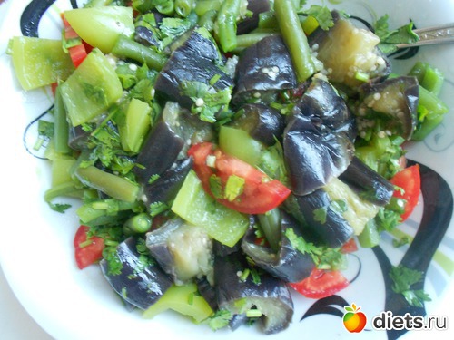 Заправлен маслом и бальзамико (мною лично, то есть их - капли).