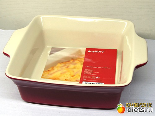 вкуснотища...прямо в форме ставлю на стол..только осторожно, она будет очень горячая, я подкладываю салфетку из соломки, как подставку...и как торт кусочками режу в форме и раскладываем по тарелкам..