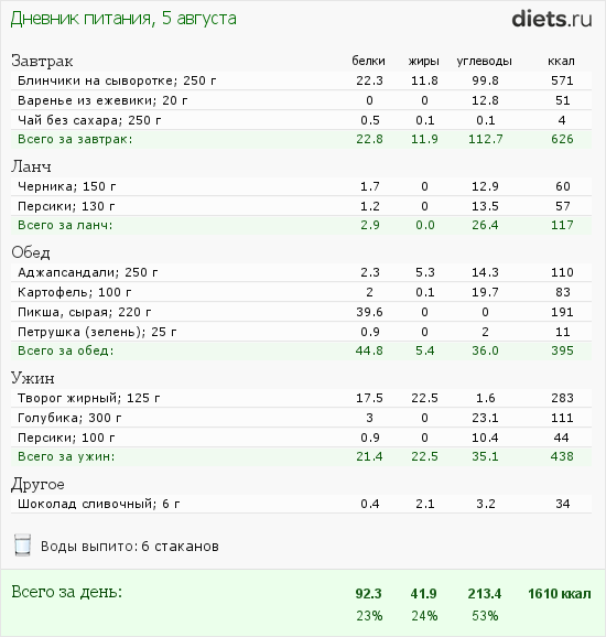 Даже с учетом калорийных блюд общий итог не превышает 1600 ккал!