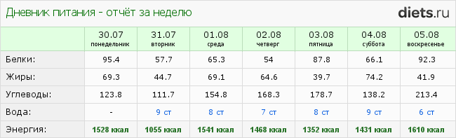 Решила попробовать вести дневник питания на сервисе сайта и увлеклась