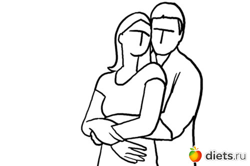 4. Веселая и выражающая любовь поза. Она обнимает его за плечи сзади. Обратите внимание на расположение рук, оно должно быть простым и естественным.