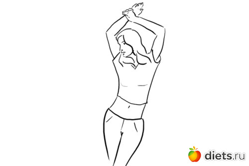 16. Чувственная поза. Руки над головой подчеркивают линии тела. Хорошая поза для стройных женщин.