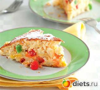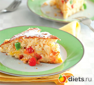 Белки взбить в крепкую пену и ввести в рисовую смесь. Разъемную форму для выпечки смазать маслом и присыпать хлебными крошками. Выложить рис и поставить в разогретую до 180°С духовку на 35 мин. Перед подачей посыпать сахарной пудрой.