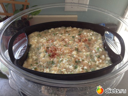 Пароварка была куплена года этак три назад для какого-то рецепта из интернета. Рецепт тот не удался, и пароварка заняла недостойное место в дальнем углу хозяйственного шкафа. А недавно сестра, дабы подлечить желудок, завела себе похожий агрегат. И хвалит его, и хвалит - каждый день. Вот тут-то я и подумала, что если придумать что готовить - это идеальный подход к Дюкановским идеям: масла не надо, при обработке еды паром сохраняется больше полезных веществ (Миф? не знаю) и что самое главное - можно в одной "кастрюле" приготовить и себе и людям, которым хочется углеводов, да побольше!