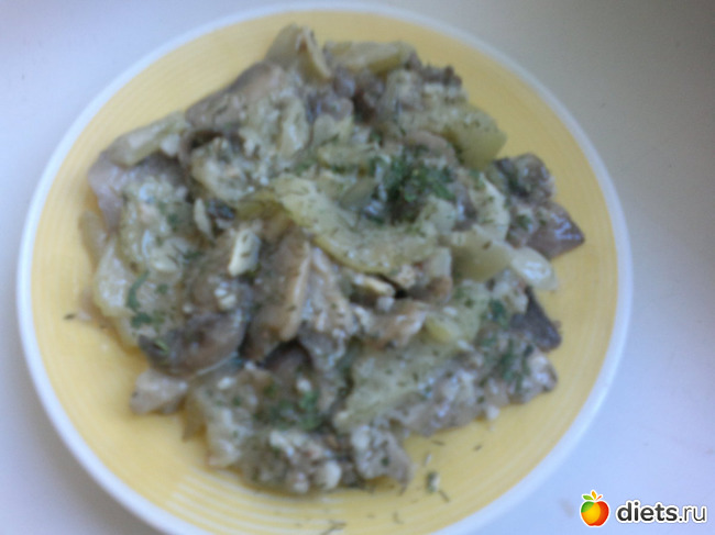 а потом добавила кабачки, тушила еще дольше чем 15 минут, минут 25 точно, потому что кабачков было много. Вместо майонеза и сметаны взяла йогурт активия легкий 1.5%, добавила чеснок и укроп.