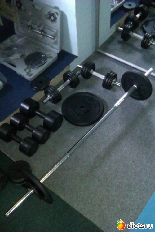 В чемоданчиках обновка - прикупила добавочные диски и разборный гриф и еще 2 гантели наборных.
