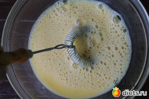 Добавляем молоко и тоже взбиваем в однородную массу. Солим и перчим: