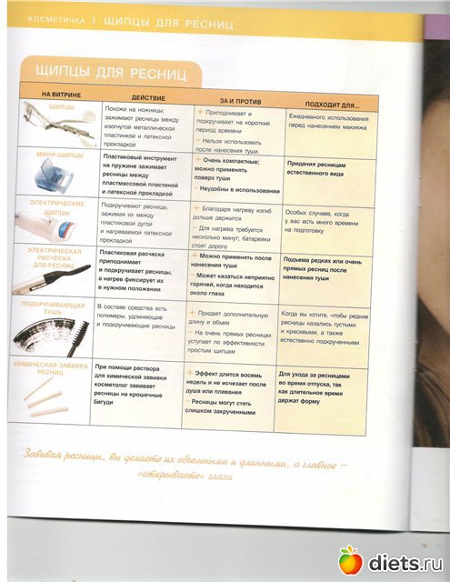 Щипчики для завивки ресниц являются, пожалуй, наиболее щадящим методом придания ресницам красивой изогнутой формы. Разумеется, если делать макияж глаз с их помощью каждый день или пользоваться ими неправильно, можно нанести ресницам вред. И все же механические щипчики для завивки выигрывают по соотношению безопасность/качество. Они обеспечивают более стойкий эффект, чем плойка или тушь со специальной кисточкой, и могут использоваться даже аллергиками, чего не скажешь о химическом способе завивки ресниц (процедура проводится, по сути, так же, как и завивка волос на голове, и требует непременного вмешательства профессионала – правда, и результат может сохраняться до трех месяцев).